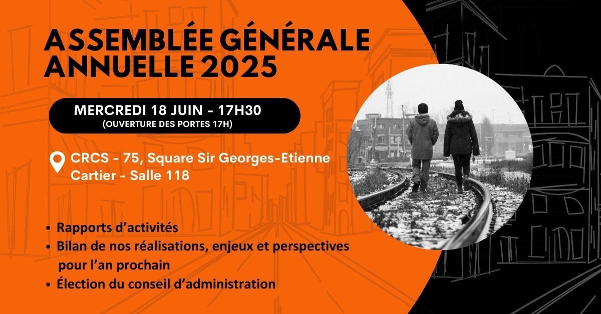 Assemblée générale annuelle du TRAC – 18 juin 2025 Le mercredi 18 juin 2025, à 17h30 (ouverture des portes à 17h00). CRCS ST-ZOTIQUE – 75, Square Sir Georges-Etienne Cartier – Salle 118 – H4C 3A1 – Montréal (attention changement de lieu) L’assemblée débutera à 17 h 30 et se terminera vers 20h00. À l’occasion de cette … Read more